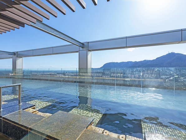 15階の天空露天風呂では、函館山やベイエリアの景色と温泉を1つに