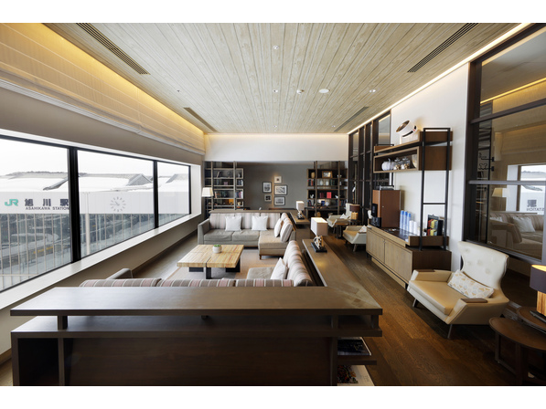 くつろぎの宿泊者専用のラウンジでは無料コーヒーや充実した書籍をご用意。