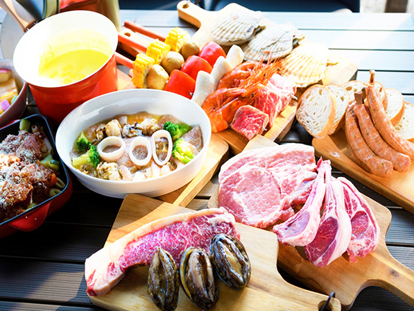 • 【肉&海鮮BBQ】霜降りロース・ラム肉・あわび・ホタテなど/山海の幸を貸切キャビンで【2食付】