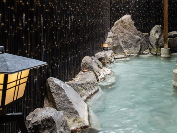 露天風呂_「源泉100%かけ流し宣言」加温・加水・循環・塩素消毒を一切行わない、自家源泉かけ流しです。
