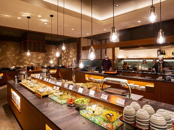 レストラン「haspo」_お客さまの目の前で調理するライブキッチン。できたての料理をお召し上がりください。