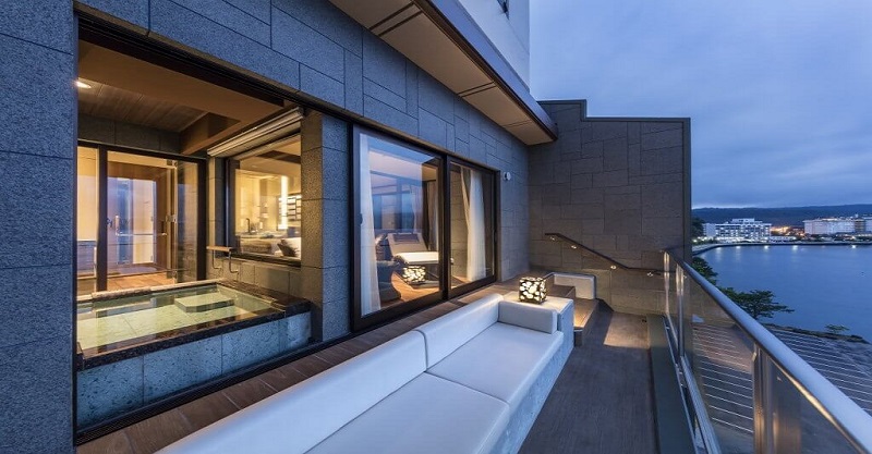 すべての客室に温泉露天風呂&テラスを完備した贅沢な造りになっています。
