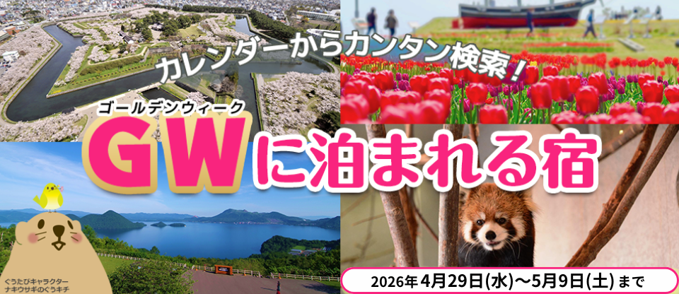 GWの予定はもうお決まりですか?ご希望の日にちをタップして空室のある宿・ホテルをカンタン検索♪ 人気のお日にちはお早めにご予約を。