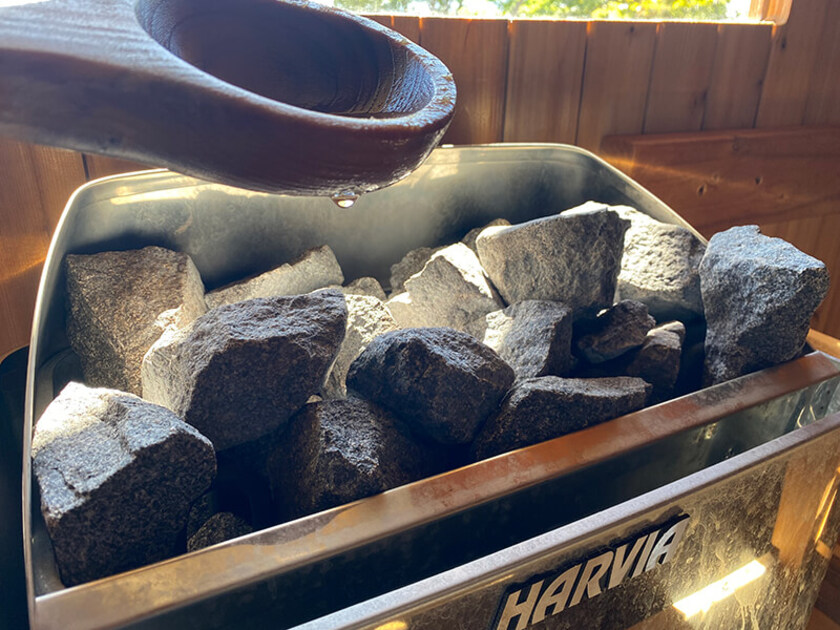 • サウナストーンに水をかけて蒸気を浴びる本場フィンランド式ロウリューサウナ(丸の湯ほか)