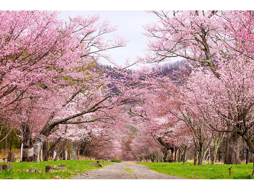 - 二十間道路が整備されたのは明治36年のこと。宮内省所管の新冠御料牧場(現家畜改良センター新冠牧場)を視察する皇族方の行啓道路として、桜が植栽されたのは大正5年。当時の牧場職員が3年の歳月をかけて近隣の山々からエゾヤマザクラ等を移植したそうです