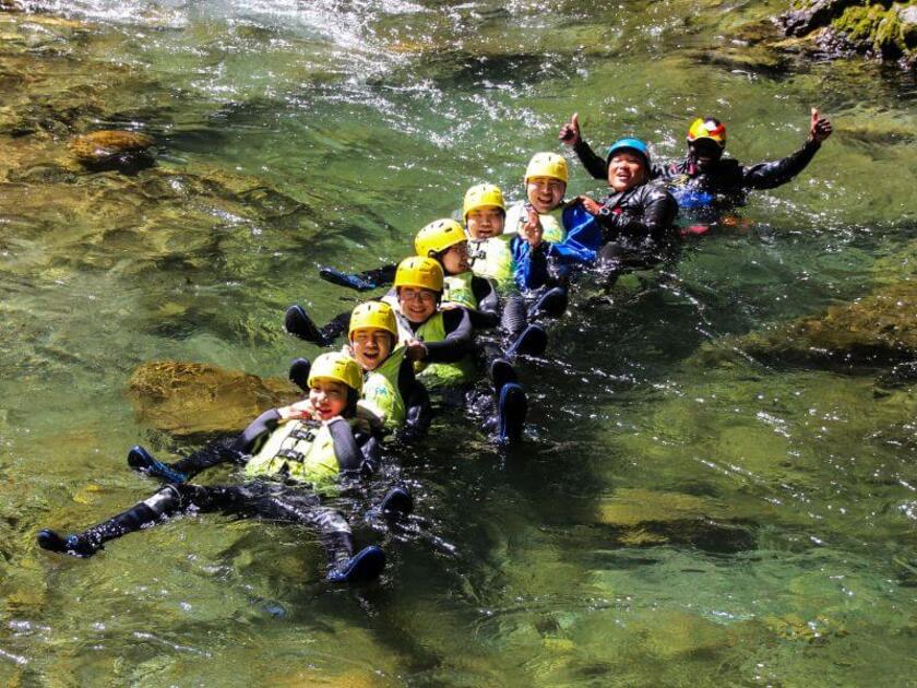 • 「川遊び」をスポーツとして体験できるキャニオニング。手つかずの自然、水の透明さに癒されながら、チャレンジ!