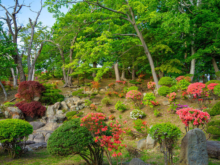 エゾヤマサクラやソメイヨシノなど、約650本の桜が咲き誇るこの公園は、満開時には多くの花見客でにぎわいます。明治26年(1893年)に開園した歴史のある公園で、桜のほかにも、「小樽市の花」であるツツジが、色とりどりにあふれるほどの花を咲かせ、散歩にも、写真撮影にも小樽市民の憩いの場として親しまれています。約23.5haもある小樽公園には総合体育館や、小樽市公会堂、市民会館が点在しています。