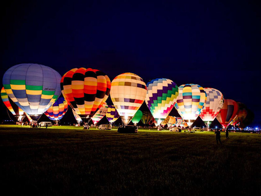 • 夜空を照らす熱気球による幻想的な光景