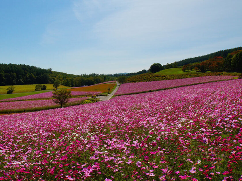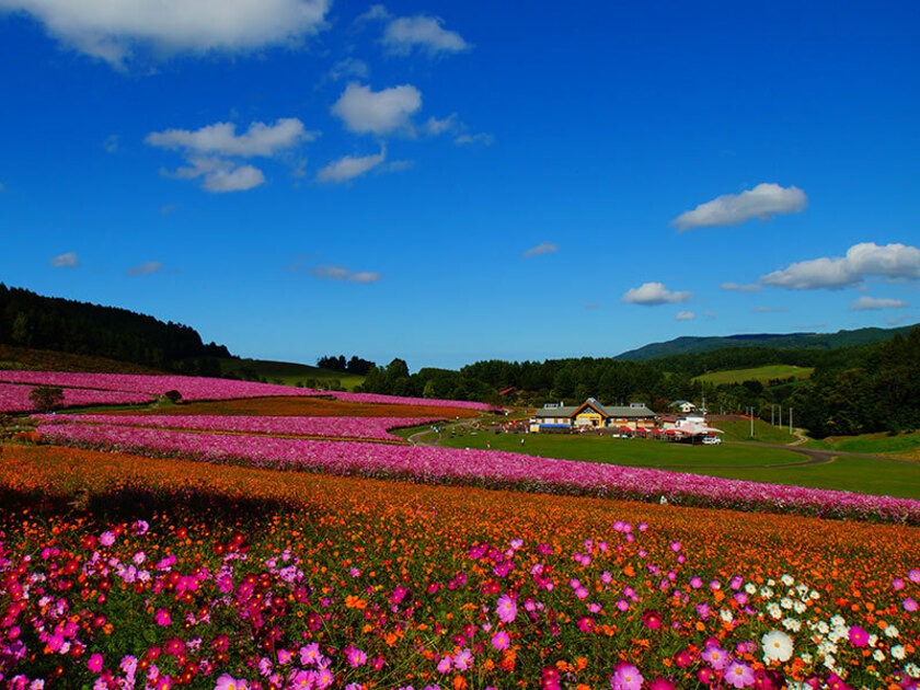 オホーツクブルーの青空と森の緑にコスモスが映える、「太陽の丘コスモスフェスタ」が開催されます!コスモスダンスフェスタ、その他ステージイベント、楽しい様々なエア遊具、はたらく車大集合、大道芸人など大人から子どもまで楽しめる内容です。太陽の丘えんがる公園は約65haの広大な都市公園で、一画の10haが1,000万本のコスモス畑に。種類は約14種、見頃を迎える8月下旬から9月中旬は色彩豊かに!ぜひコスモス鑑賞とお祭りを楽しんで。