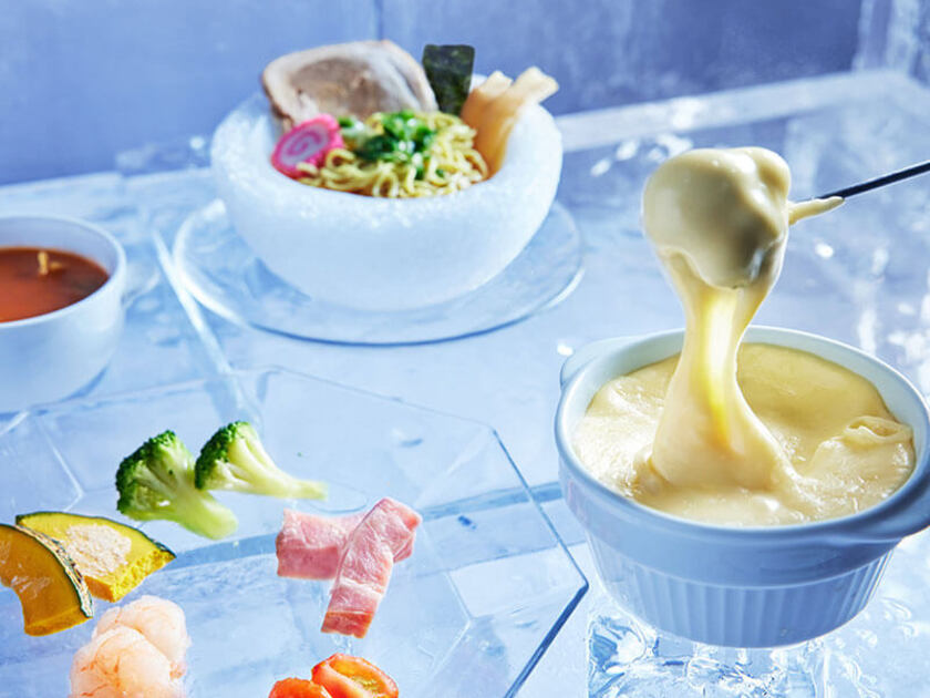 トマムの冬の夜にだけ現れる幻想的な氷の街「アイスヴィレッジ」が今年もオープンします! 3.2ヘクタールの敷地に、氷や雪でできた11棟のドームが立ち並ぶ、トマムの冬の風物詩です。今年は、アイスヴィレッジの象徴である「氷の教会」が誕生20周年を迎えます。継ぎ目のない一枚氷で造られた教会は、参列者が360度を囲むデザインにリニューアル。さらに、氷の教会の20年にわたる歴史や誕生秘話を知ることができる「氷の美術館」が新たに登場します。また、極寒を楽しむコンテンツとして「氷のレストラン」「氷のスイーツショップ」「氷のキッズドーム」の3店舗が新登場。「氷のレストラン」では、冷たい麺と凍ったトッピングを加えた「氷のラーメン」や、凍らせた具材をとろけるチーズにからめる「チーズフォンデュ」などのユニークなグルメを味わえます。寒さを活かしてチョコレートが固まる様子を体験できるスイーツ作りや、氷でできた透明な迷路での冒険など、ここでしかできない体験が満載です。冬の魅力が詰まった幻想的なアイスヴィレッジをぜひ楽しんで。
