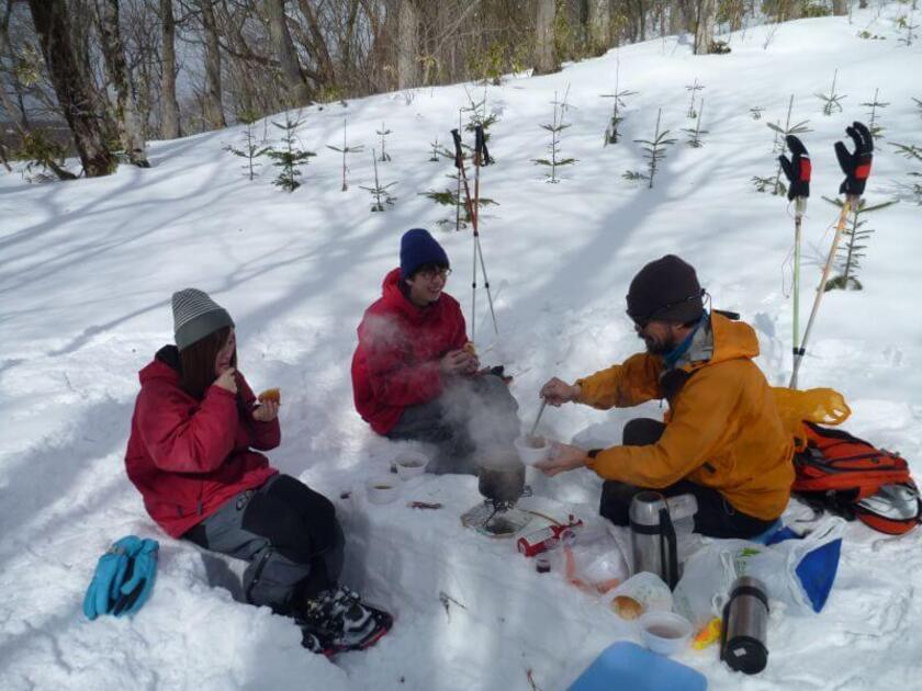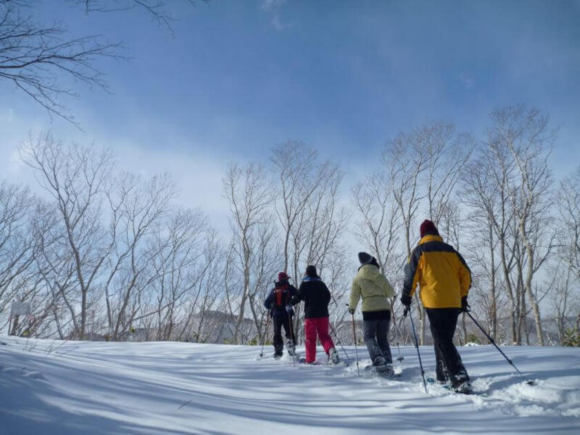 スノーシューやクロスカントリーで行くスノーハイキングは、これからアウトドアに挑戦したいと思っている人にも最適なアクティビティ。ウェアーやギアー類など、すべて無料レンタルできるので、アウトドア初心者でも気軽に参加できます。湖周辺の丘を歩く「スノーハイキング2時間コース」や横津岳山頂を目指す「バックカントリー5時間コース」など、さまざまなコースがあるので、経験者でも十分楽しめます。