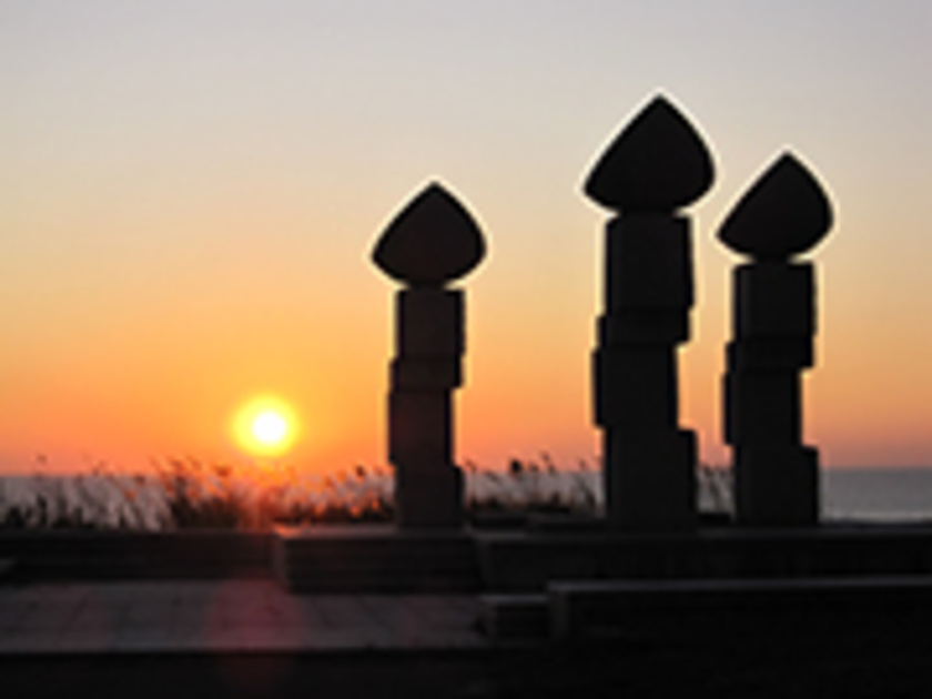 彫刻家の作品が点在する北追岬公園内。夕日、星空…自然美が広がる