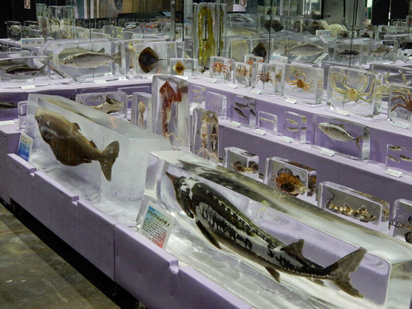 - (オホーツク海で捕れた魚類を氷漬けにして展示)